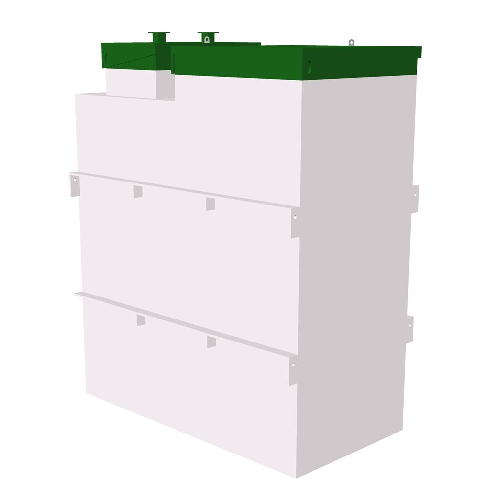 | Автономная канализация для дачи Топас 15 ПРТехнические характеристики: Количество постоянно проживающих — 15 человек Переработка стоков за сутки — 3 м3 Залповый сброс, максимальный — 850 л. Потребляемая энергия, сутки — 2,9 кВт. Масса — 380 кг Размеры, м — 2,5 x 1,2 x 2,1